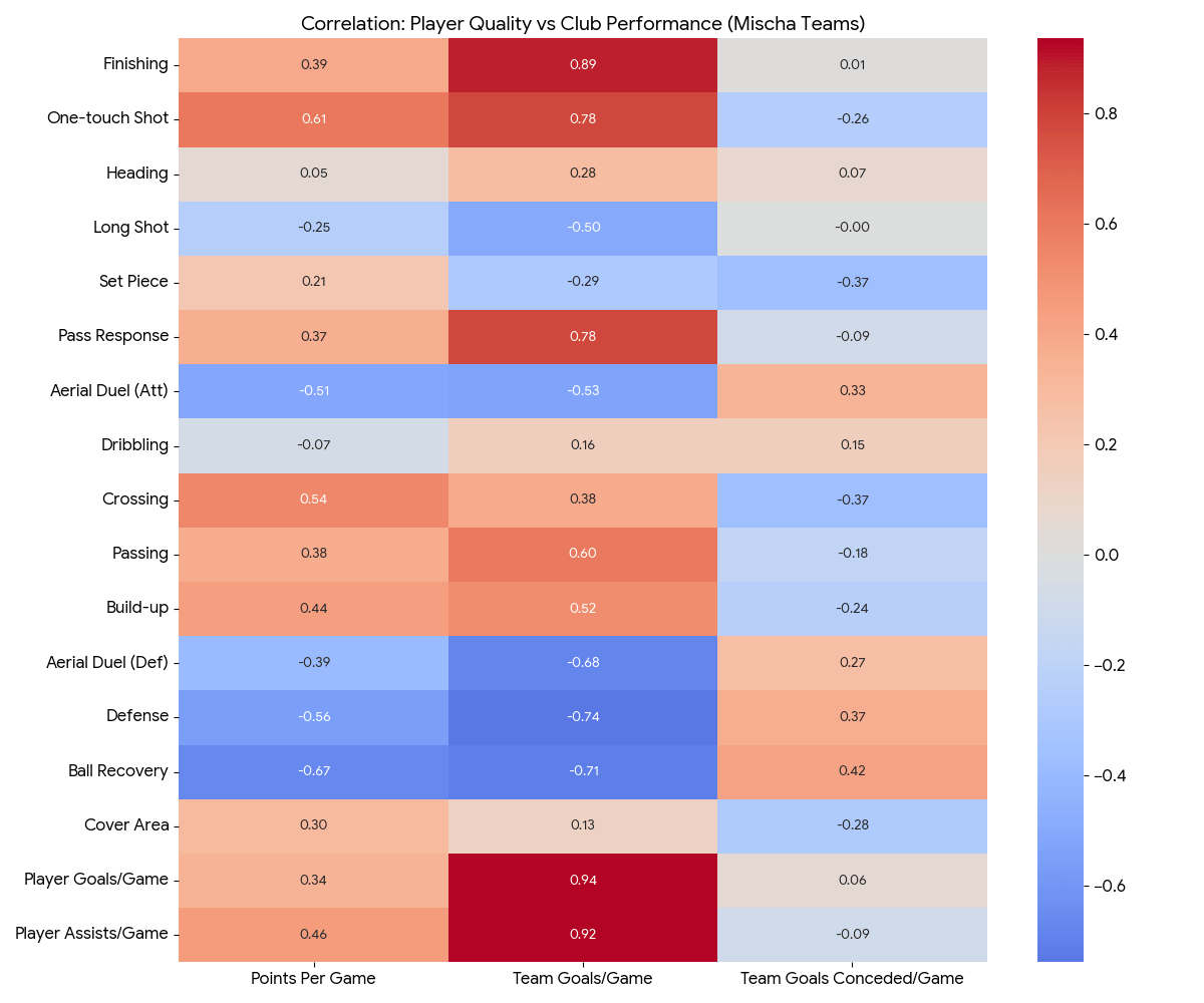 - 勝ち点(PPG)との相関: 0.68(強い正の相関)